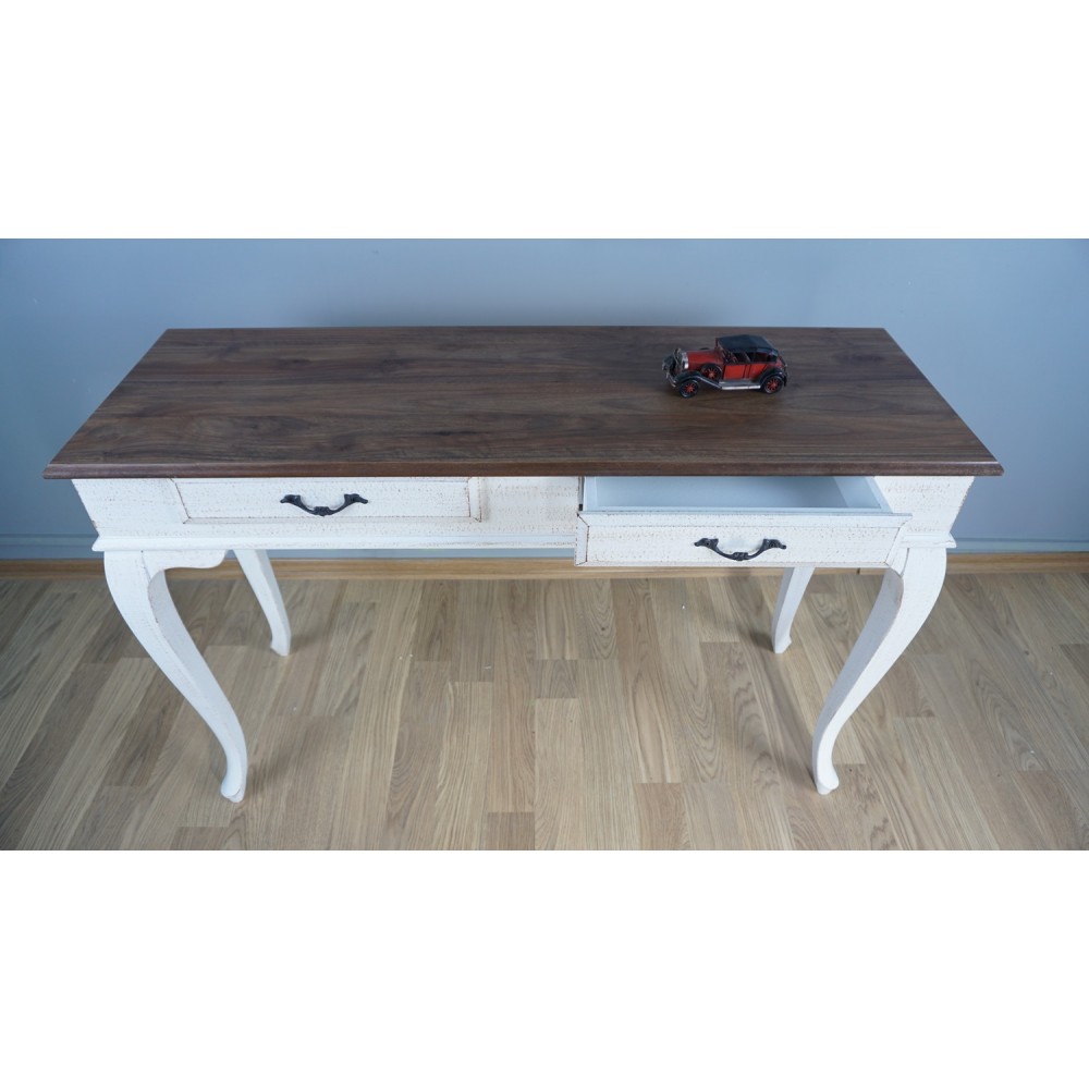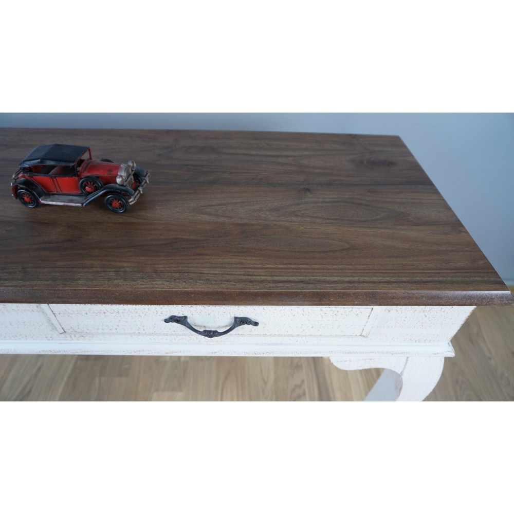 • Renk: Beyaz patine eskitme çift çekmeceli. Çekmece Kulpları antik döküm demir kullanılmıştır.