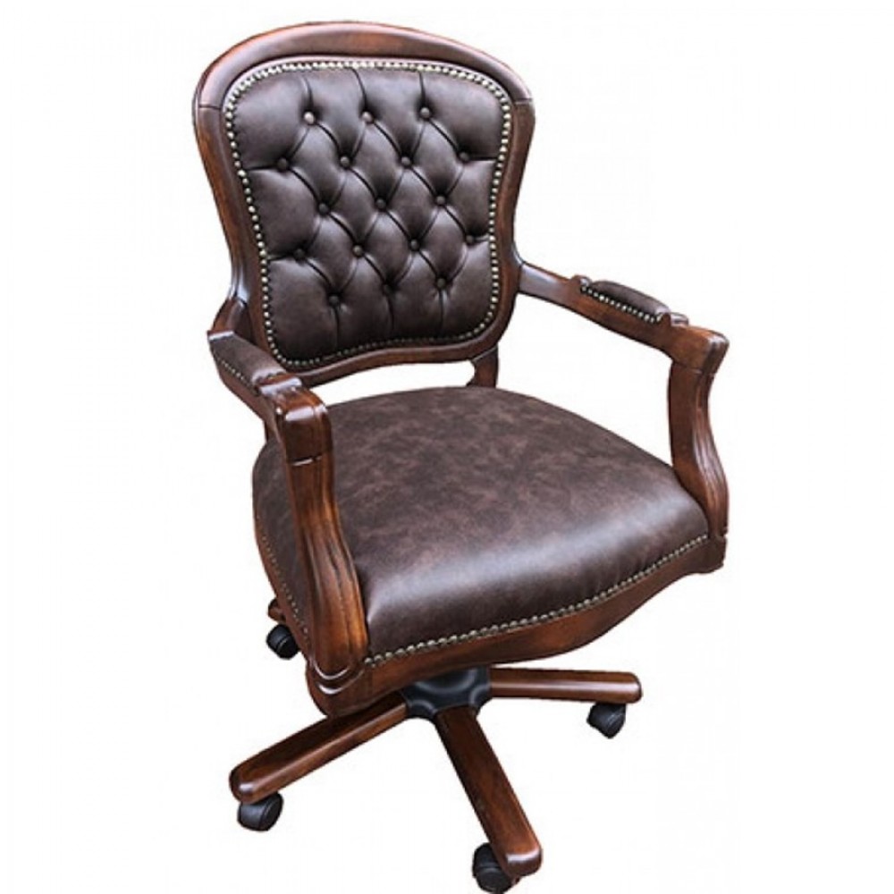 Masifart Adale Ahşap Klasik Ofis Çalışma Koltuğu Ceviz Makam Koltuğu