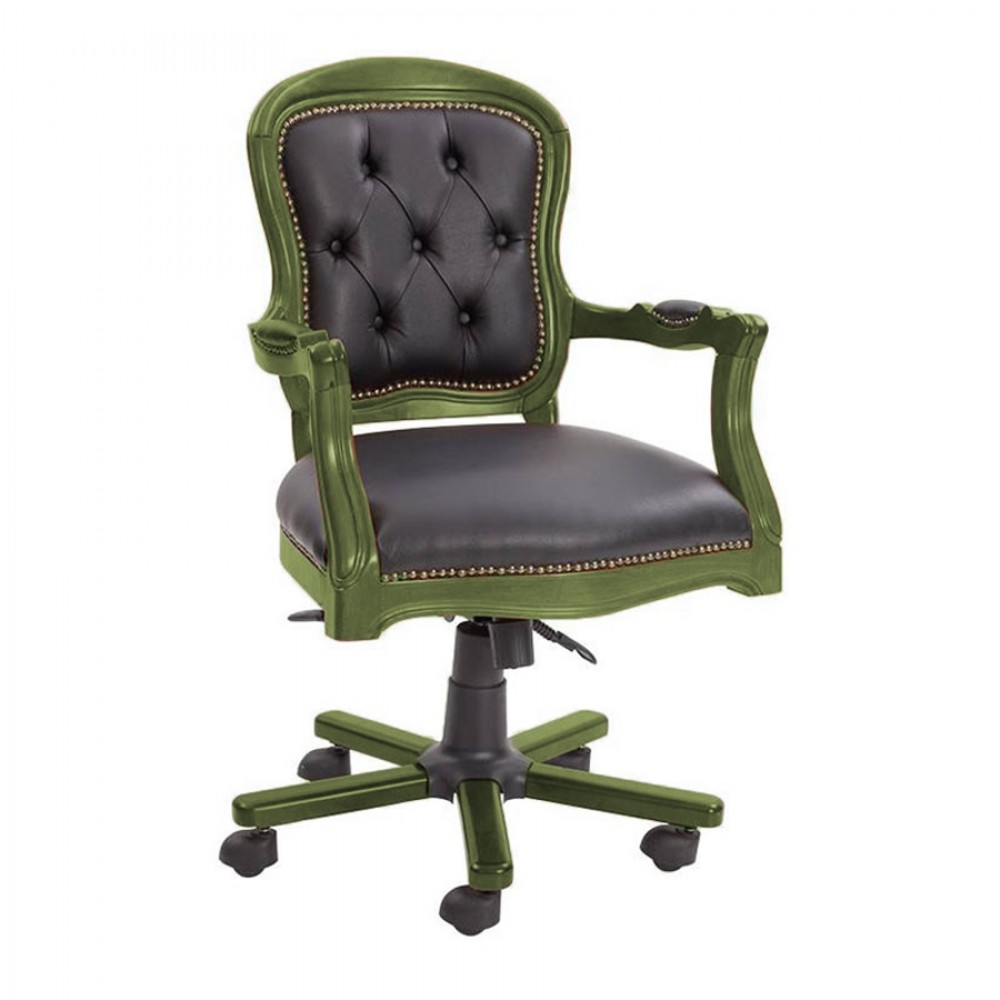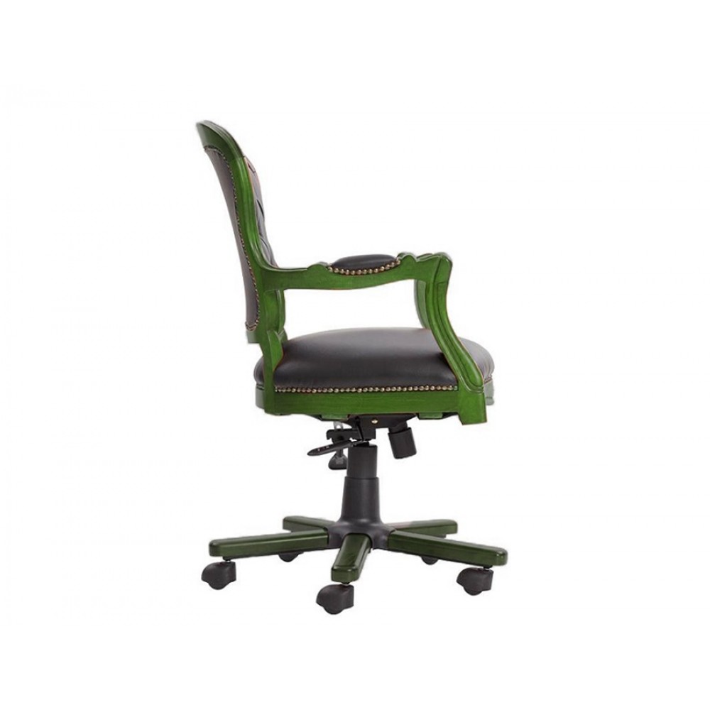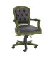 Masifart Antik Yeşil Ahşap Klasik Ofis Koltuğu Kapitoneli Çalışma Koltuğu