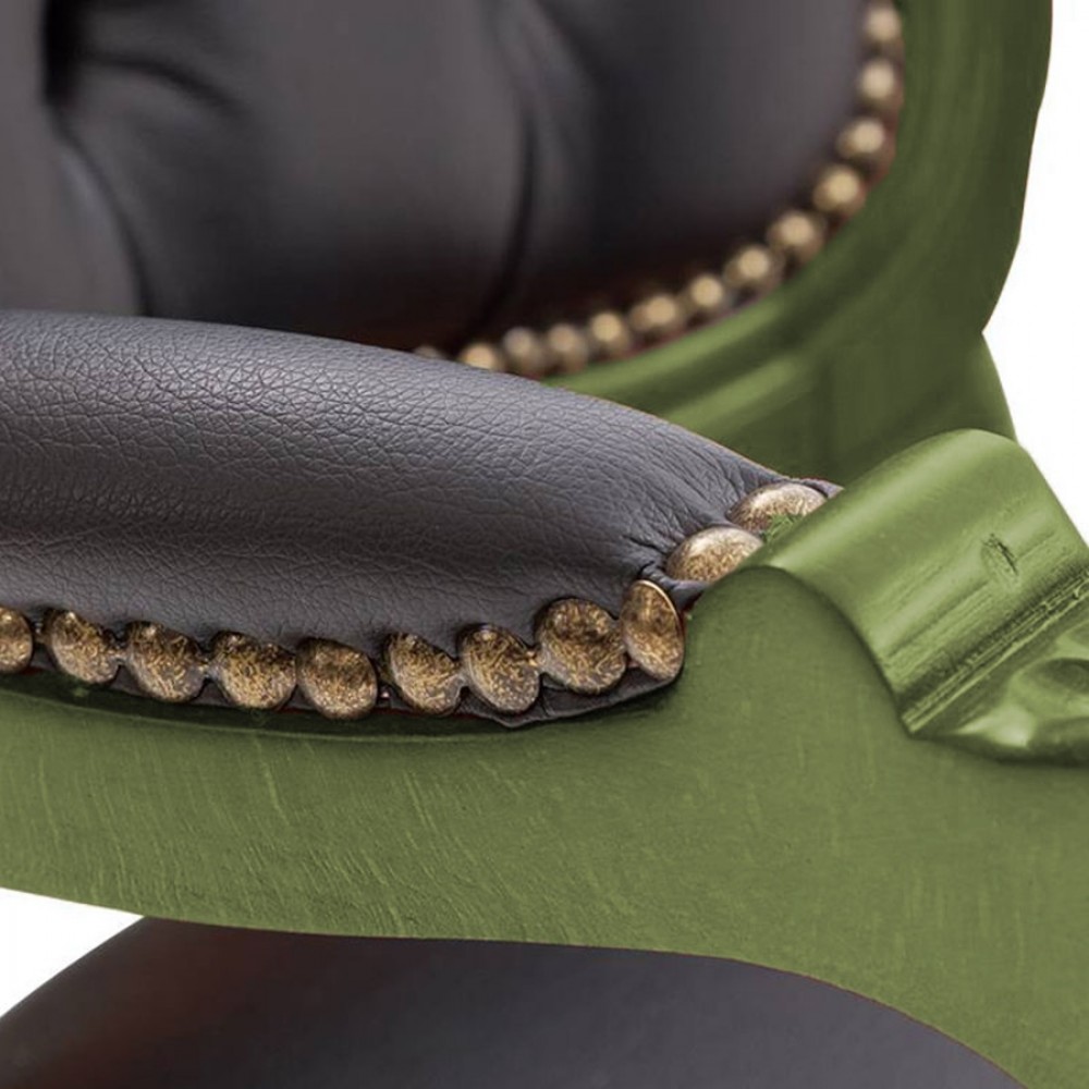 • Renk: Ahşap Kısmı Klasik Eskitme Yeşil, Kumaşı Siyah Deri döşeme