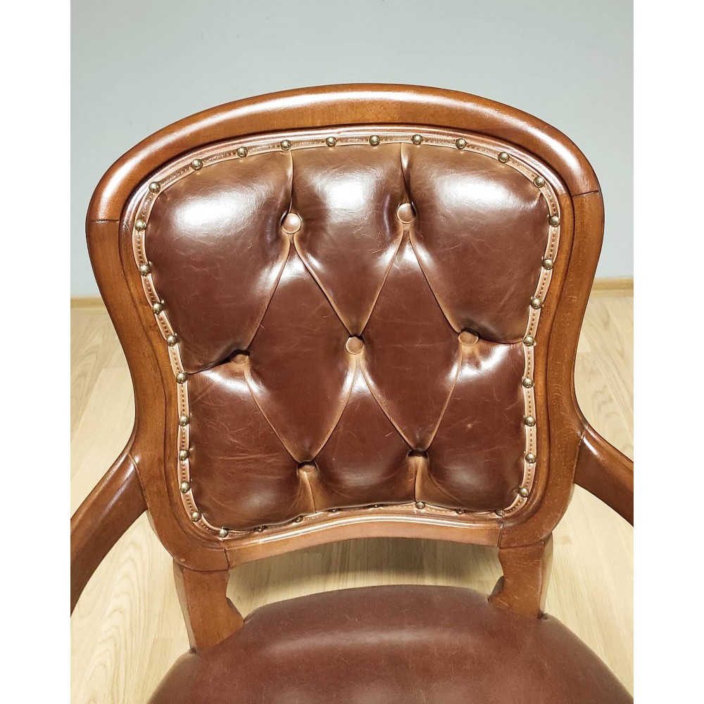 • Renk: Ahşap Kısmı Klasik Eskitme Ceviz, Kumaşı Kahve Deri döşeme