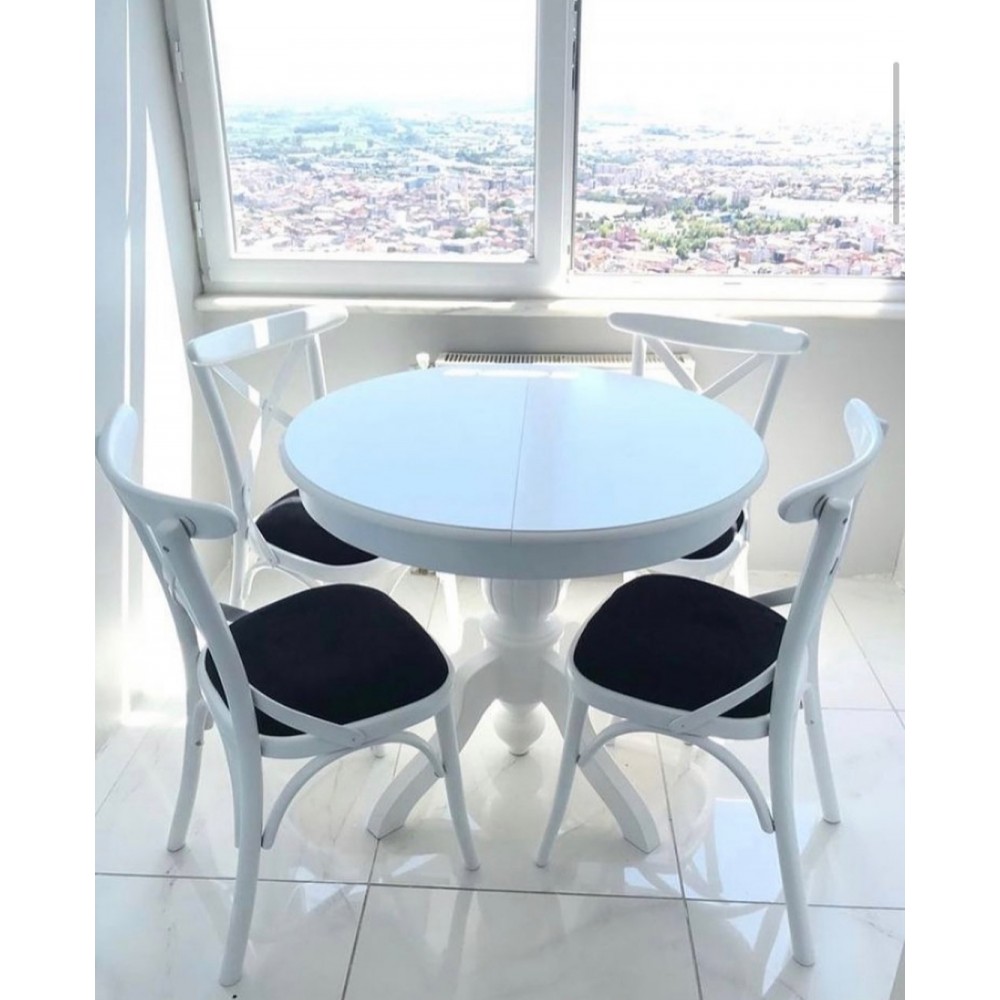 Masifart Vusla 100 cm Yuvarlak Baba Ayak Masa + 4 Sandalye Takımı