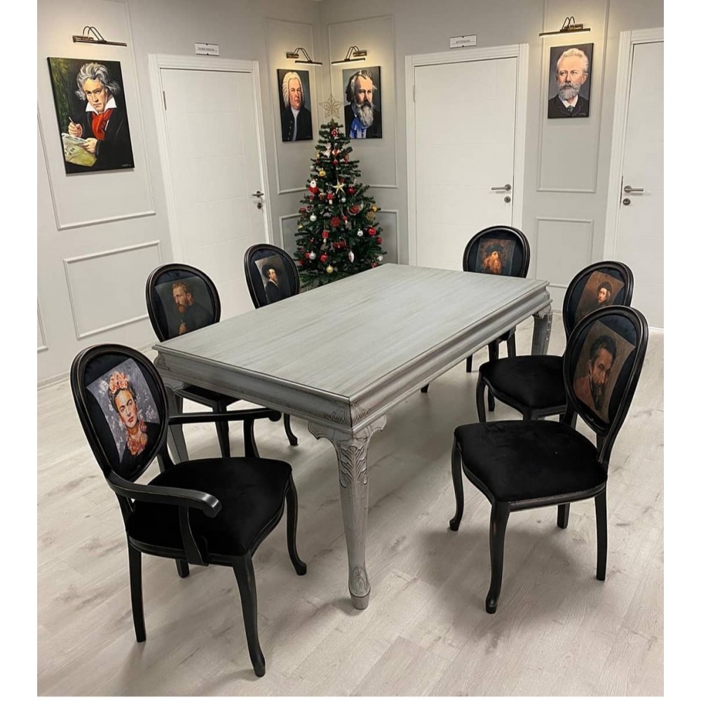 Masifart Taxon Oymalı Yemek Masası Sandalye Takımı
