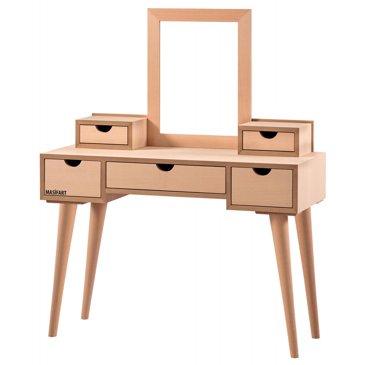 Masifart Ocie Retro Makyaj Masası Cilasız Ham