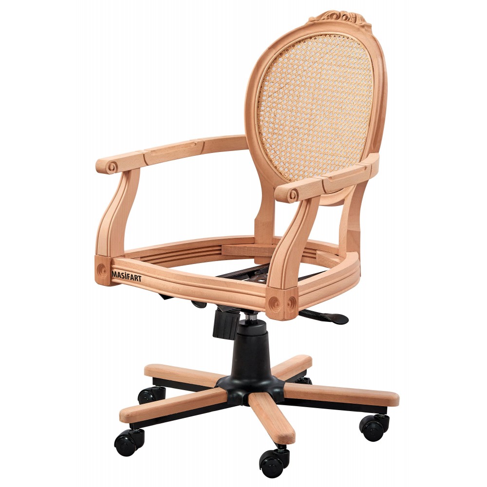 Masifart Katerina Hasırlı Madalyon Oymalı Döner Koltuk Cilasız Ham