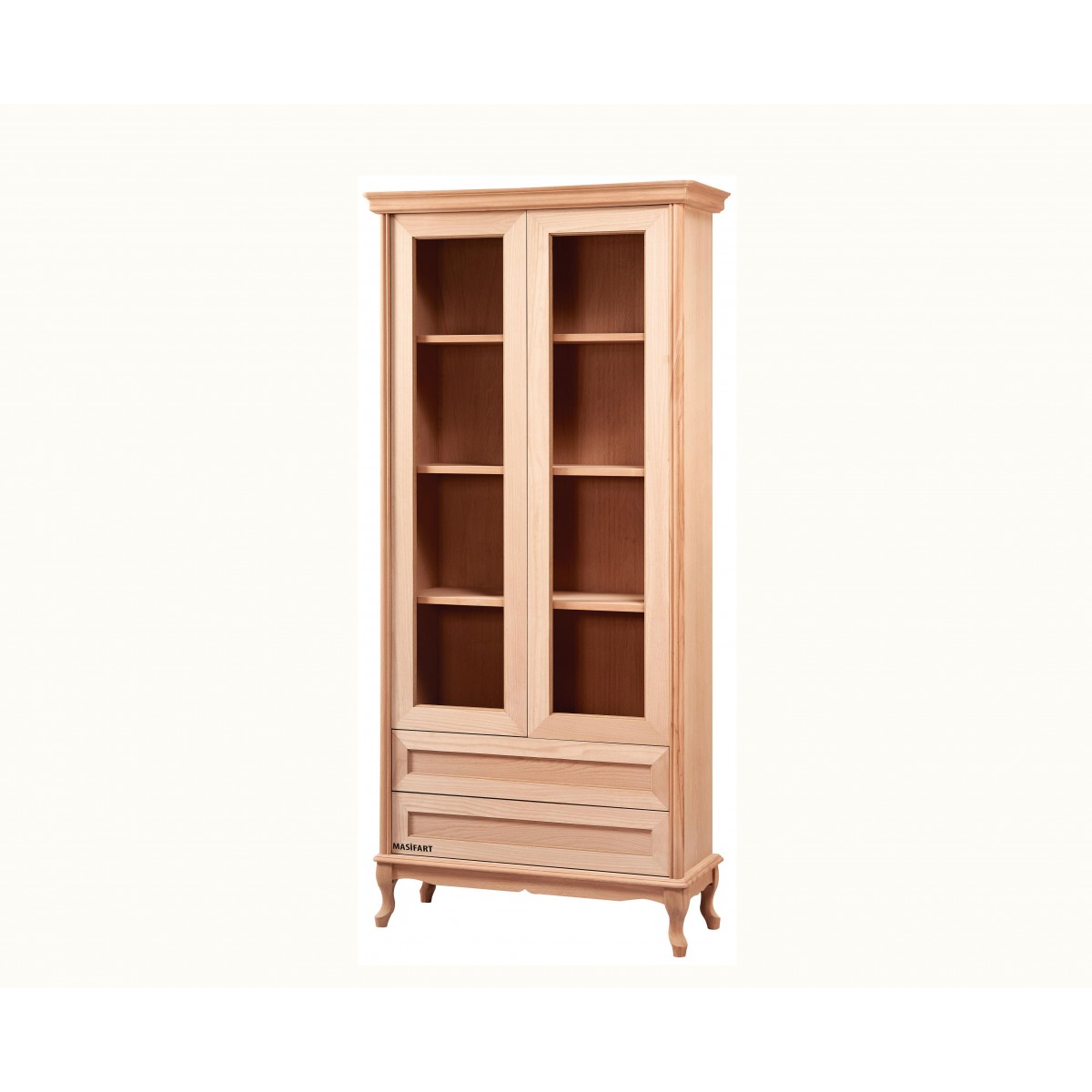 Masifart Asal Çekmeceli Camlı Kitaplık Cilasız Ham