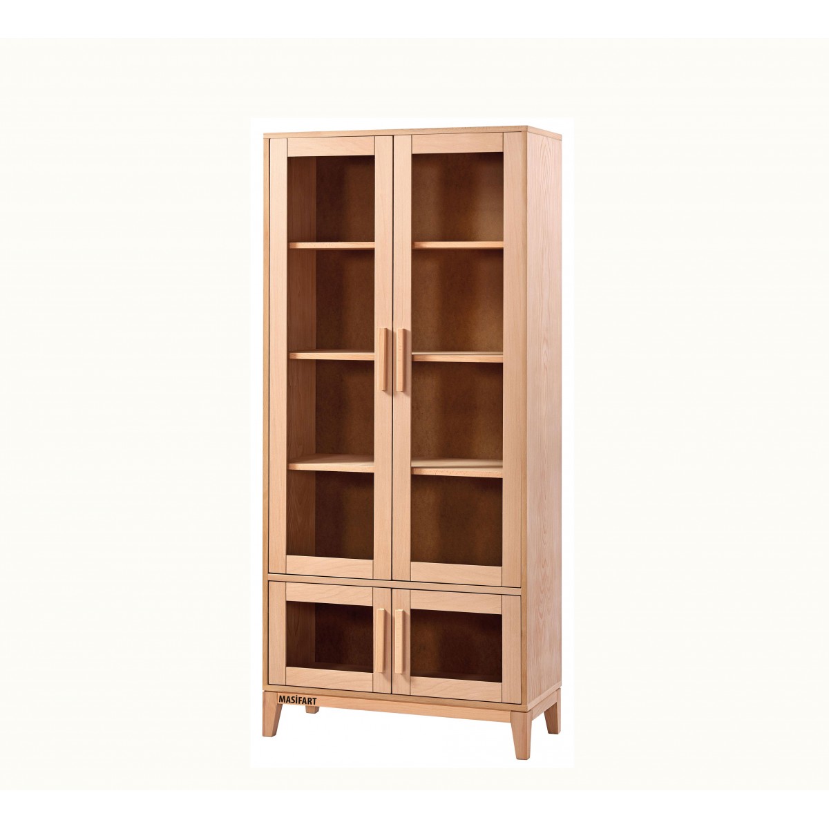 Masifart Hylan Konik Kapaklı Camlı Kitaplık Cilasız Ham
