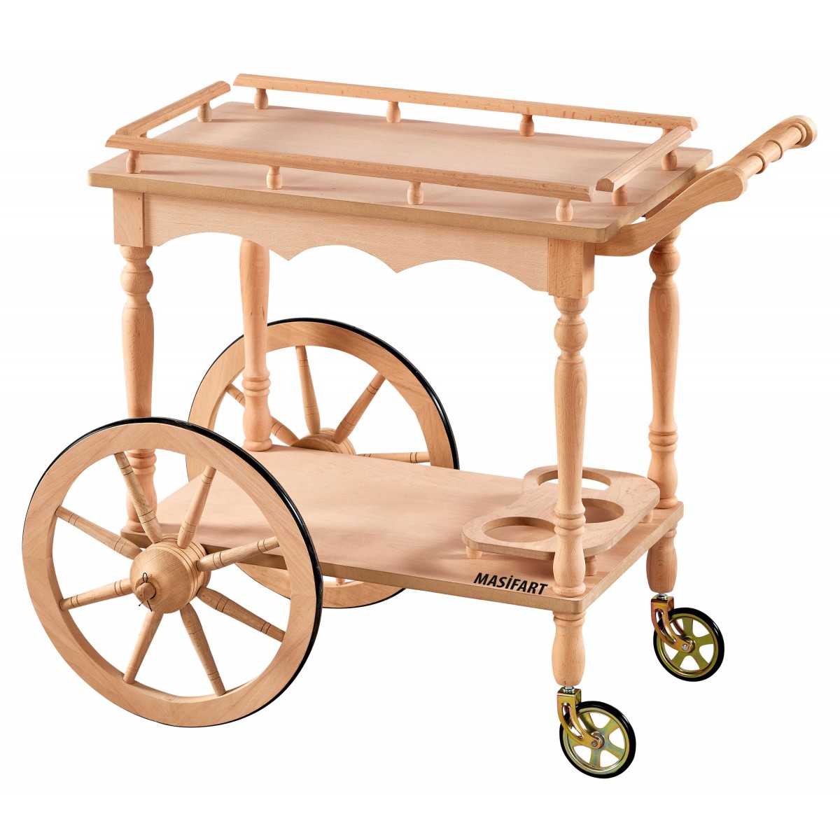 Masifart Ivory Büyük Teker Servis Arabası Cilasız Ham