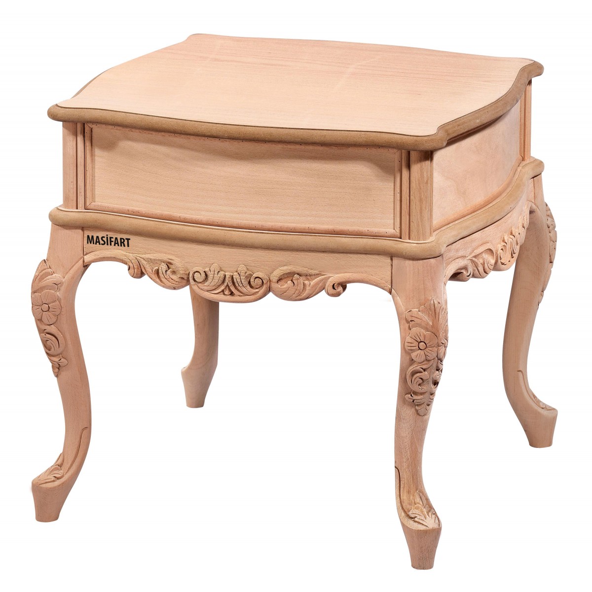 Masifart Hades Barcelona Oymalı Yan Sehpa Cilasız Ham