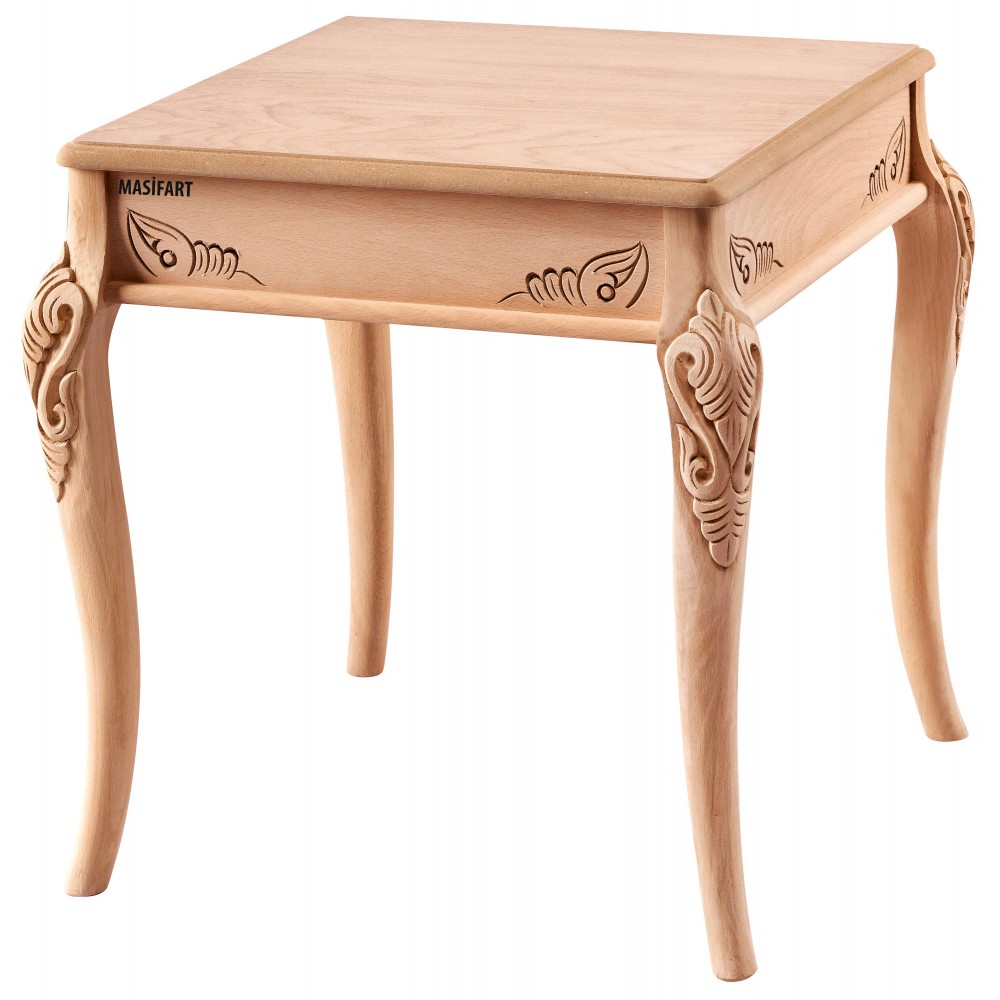 Masifart Allda İpek Oymalı Yan Sehpa Cilasız Ham