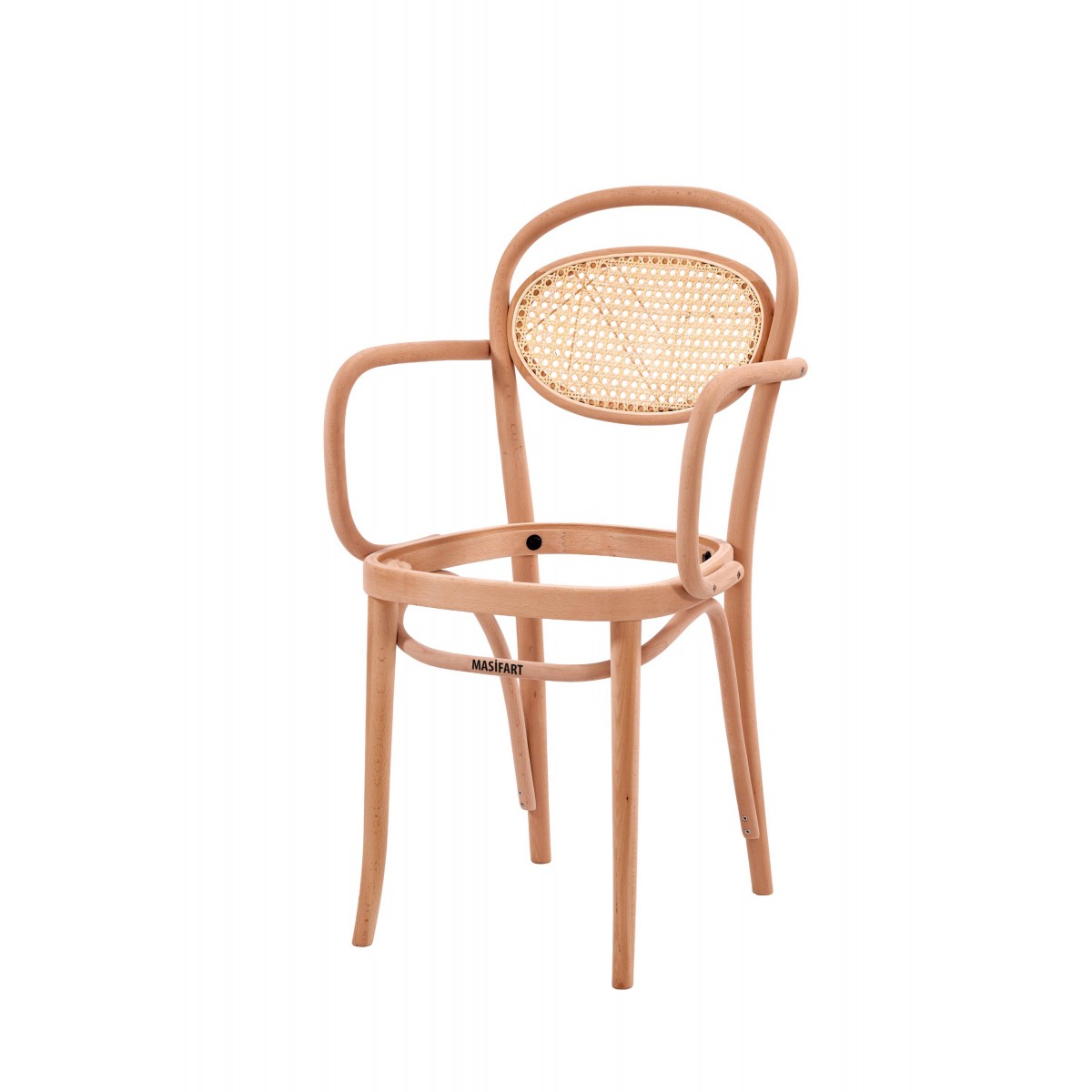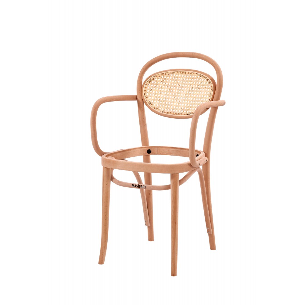 Masifart Klaudi Hasırlı Kollu Döşemeli Güneş Sandalye Cilasız Ham