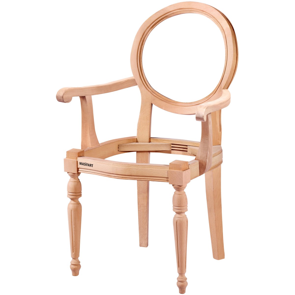 Masifart Hera Yuvarlak Kollu Sandalye Cilasız Ham