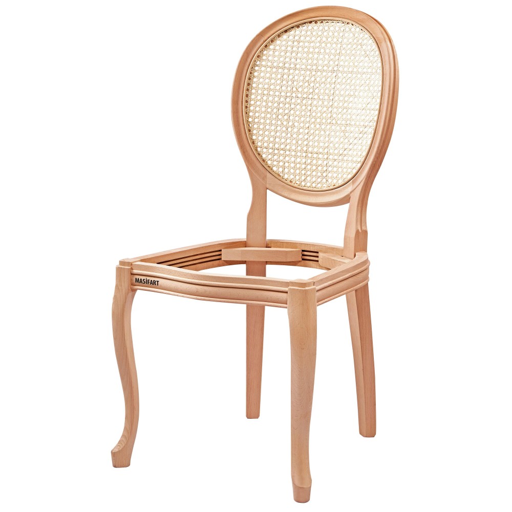 Masifart Hypat Hasırlı Madalyon Sandalye Cilasız Ham