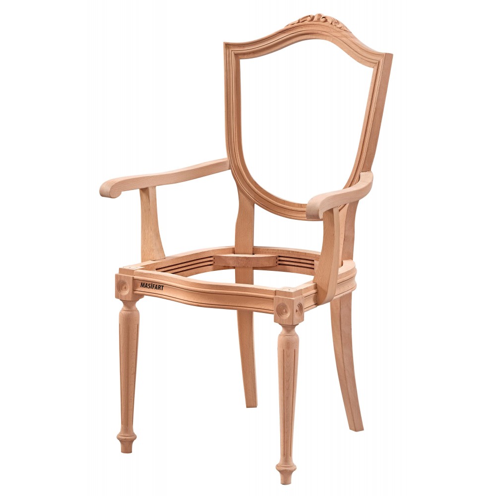 Masifart Adauto Kupa Oymalı Tornalı Kollu Sandalye Cilasız Ham