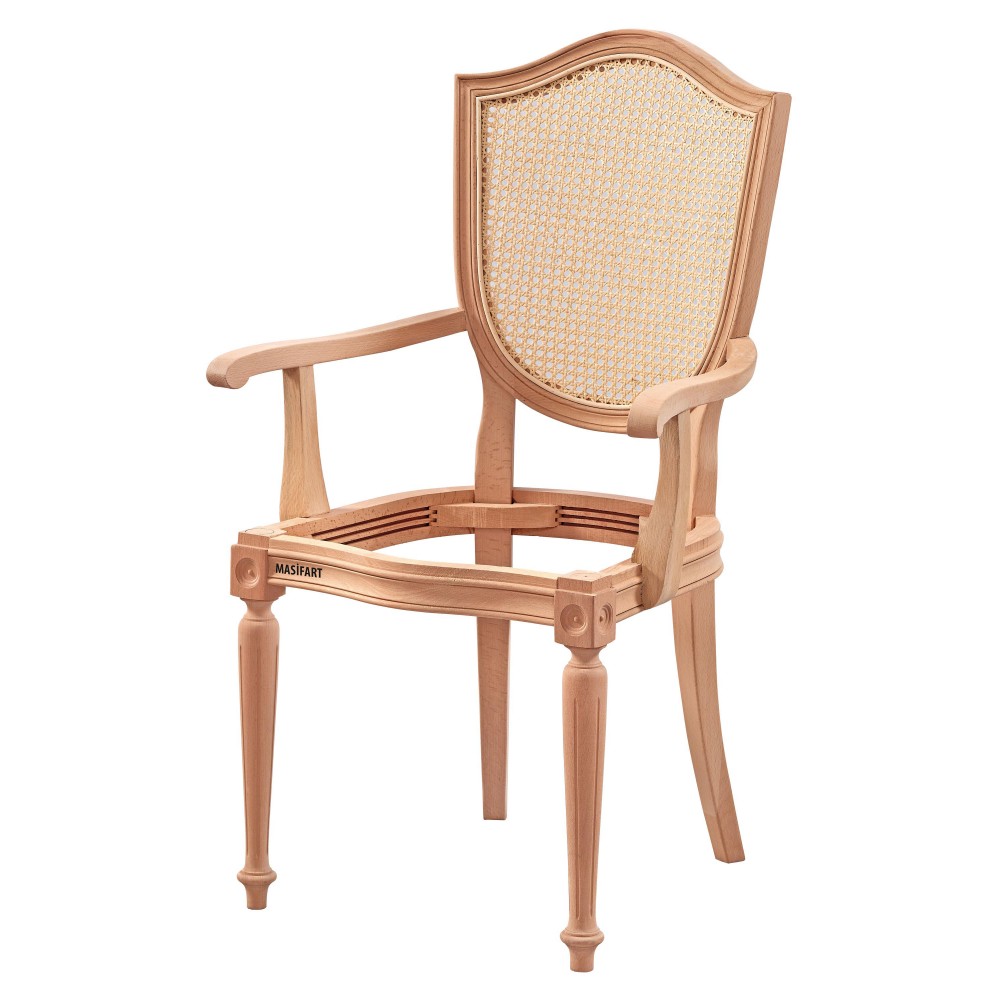 Masifart Kwint Hasırlı Kupa Tornalı Kollu Sandalye Cilasız Ham