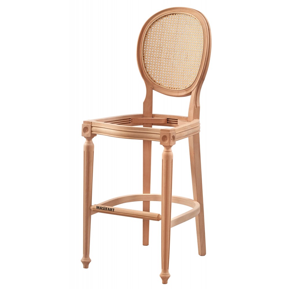 Masifart Alidia Hasırlı Tornalı Bar Sandalyesi Cilasız Ham