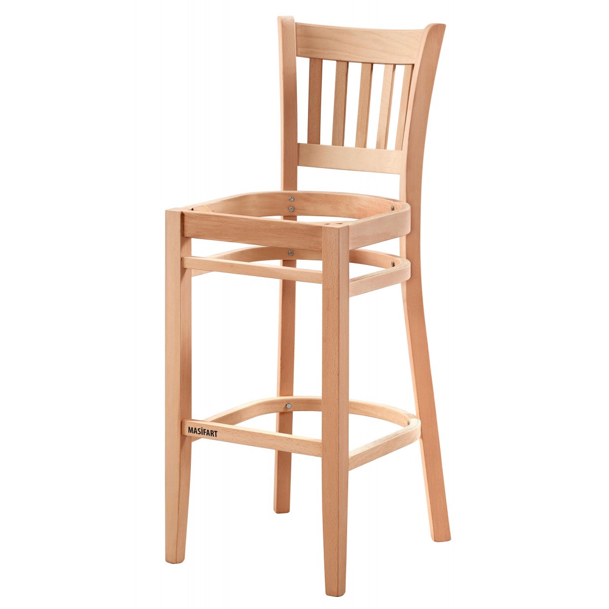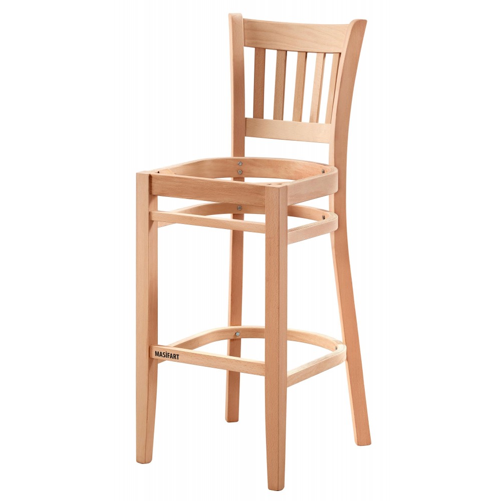 Masifart Promen Lüks Çıtalı Bar Sandalyesi Cilasız Ham
