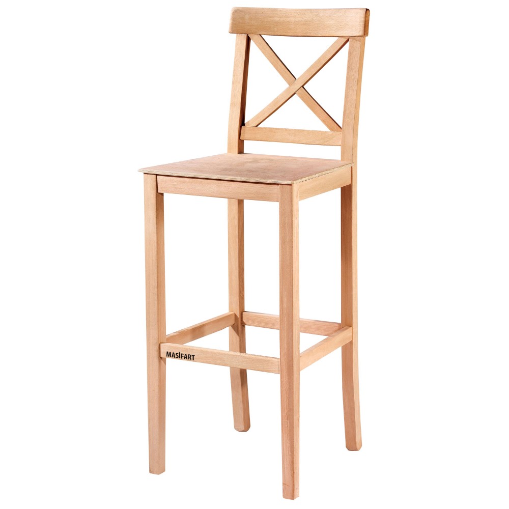 Masifart Sueca Çapraz Izgaralı Bar Sandalyesi Cilasız Ham