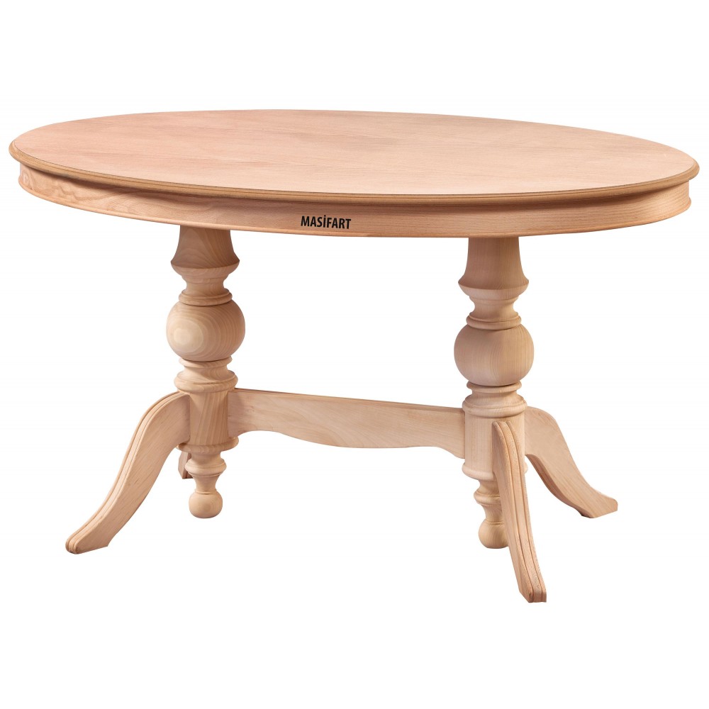 Masifart Rozet 140 Lık Çift Ayaklı Oval Masa Cilasız Ham