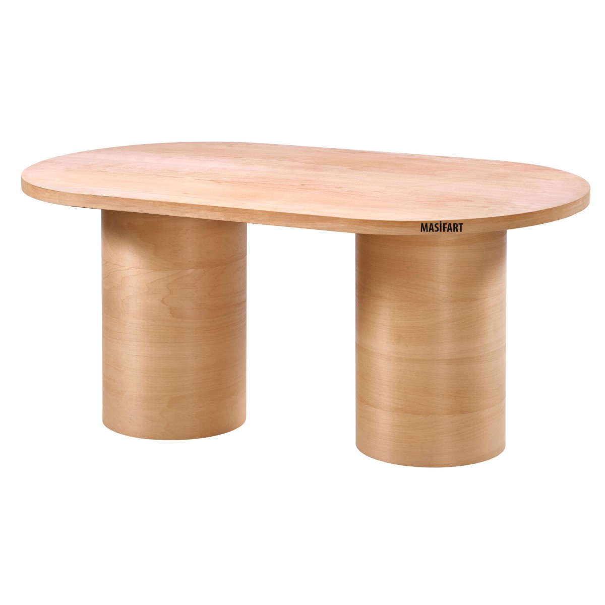 Masifart Twiska 160 Lık Kayın Silindir Oval Masa Cilasız Ham