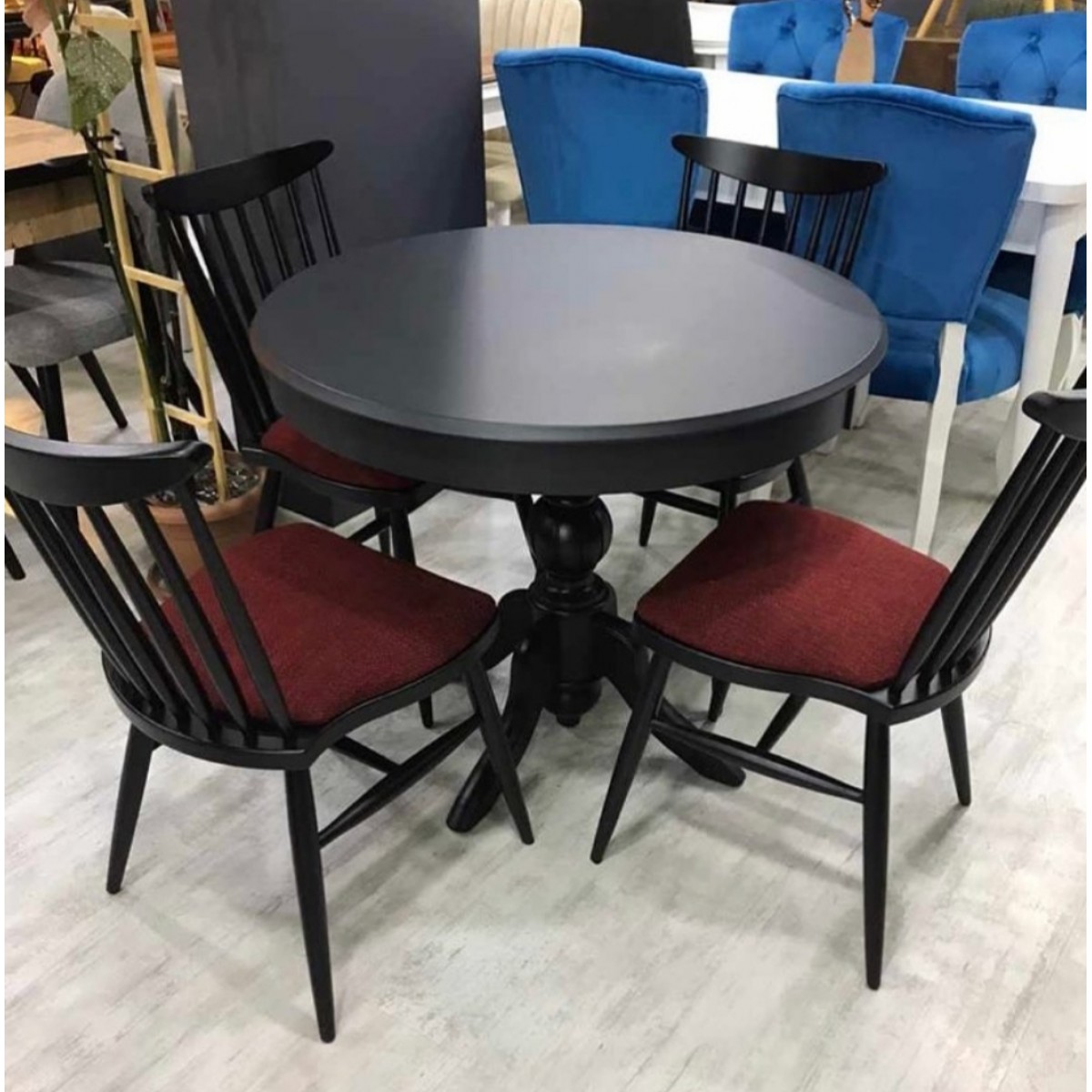 Masifart Hercai 100 cm Yuvarlak Baba Ayak Masa + 4 Sandalye Takımı
