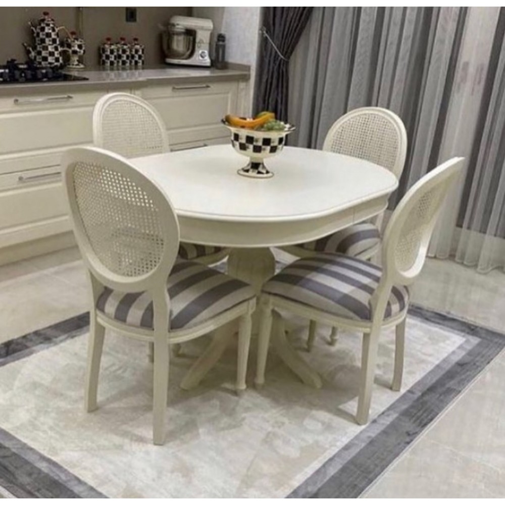 Masifart Makru 120 cm Elips Baba Ayak Masa + 4 Sandalye Takımı