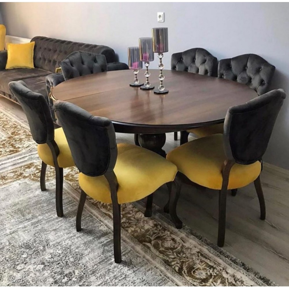 Masifart Chalr 120 cm Yuvarlak Baba Ayak Masa + 6 lı Sandalye Takımı