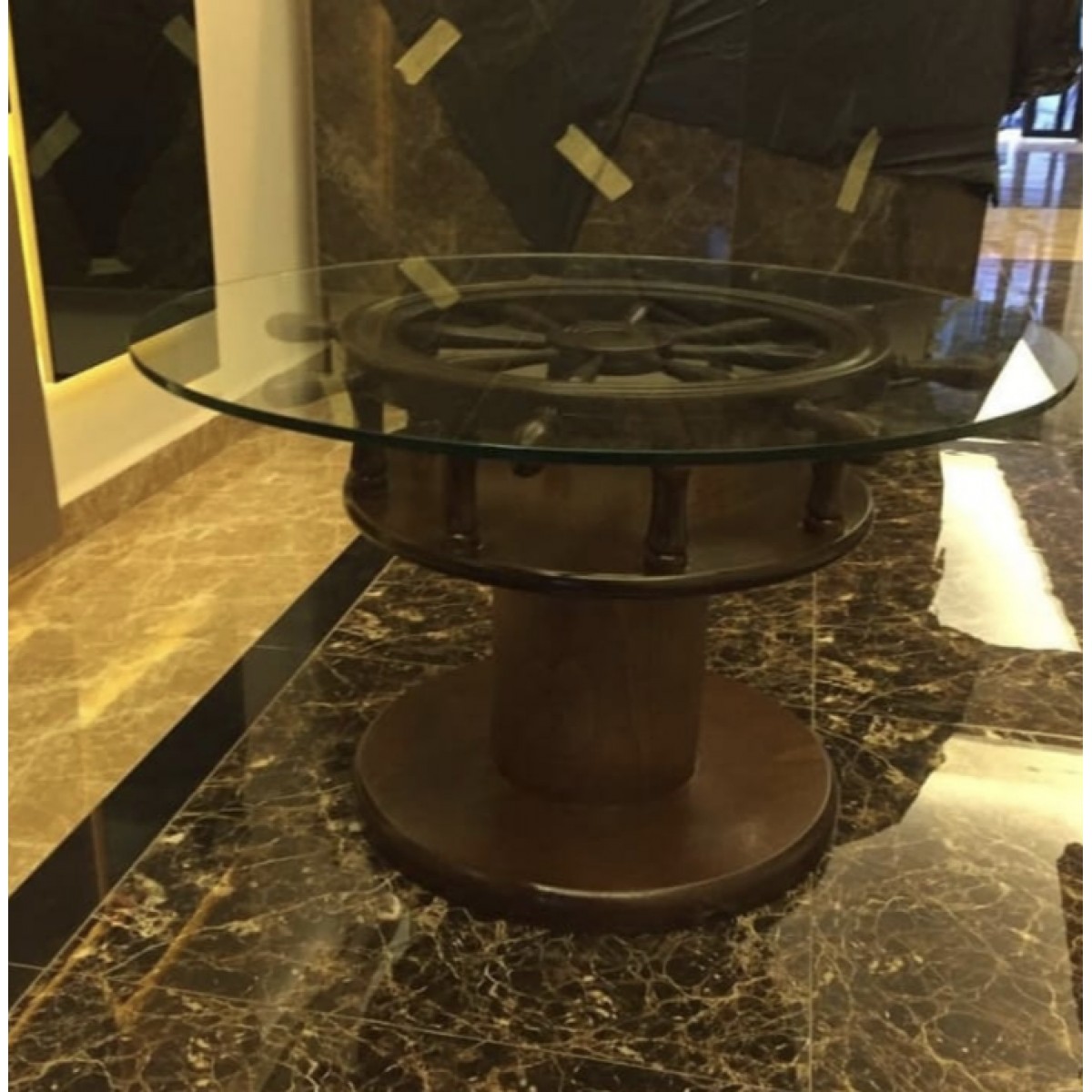 Masifart Dümen Sehpa camlı yuvarlak
