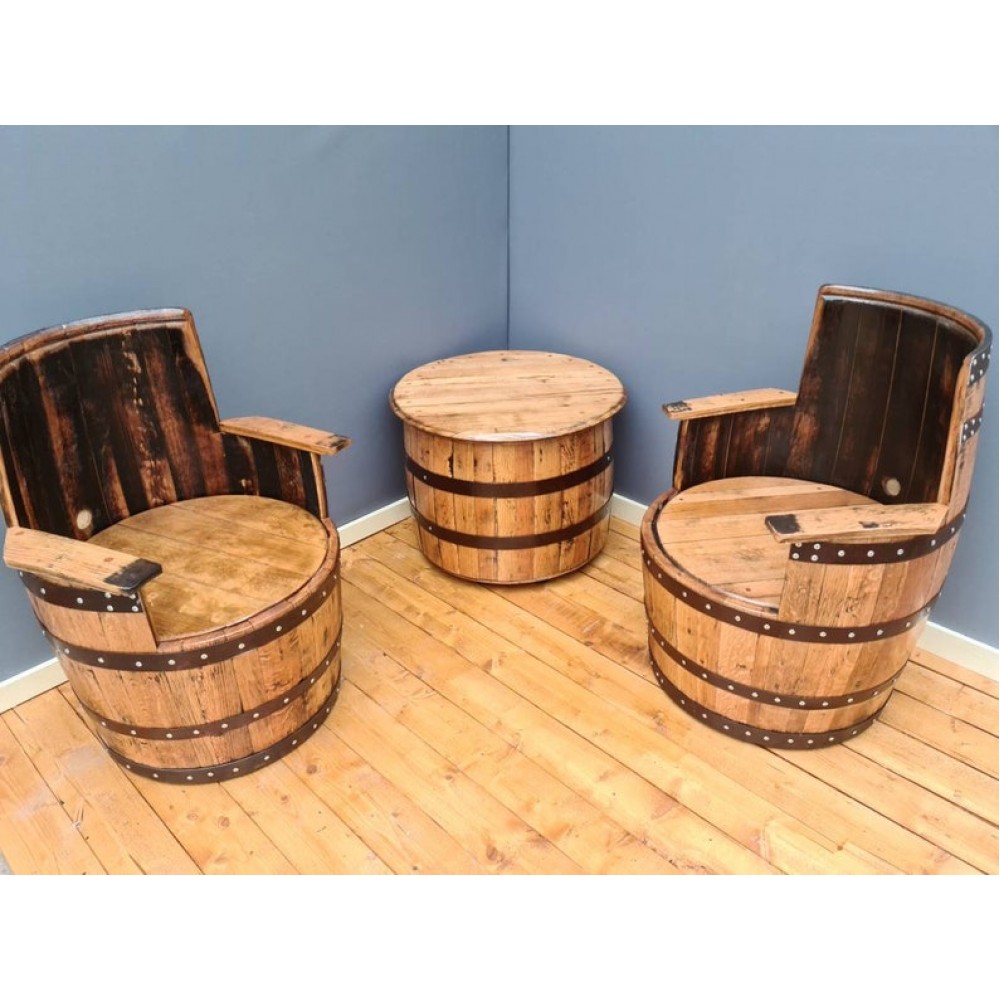 Masifart Şarap Fıçısı Çift Koltuklu Sehpalı Takım