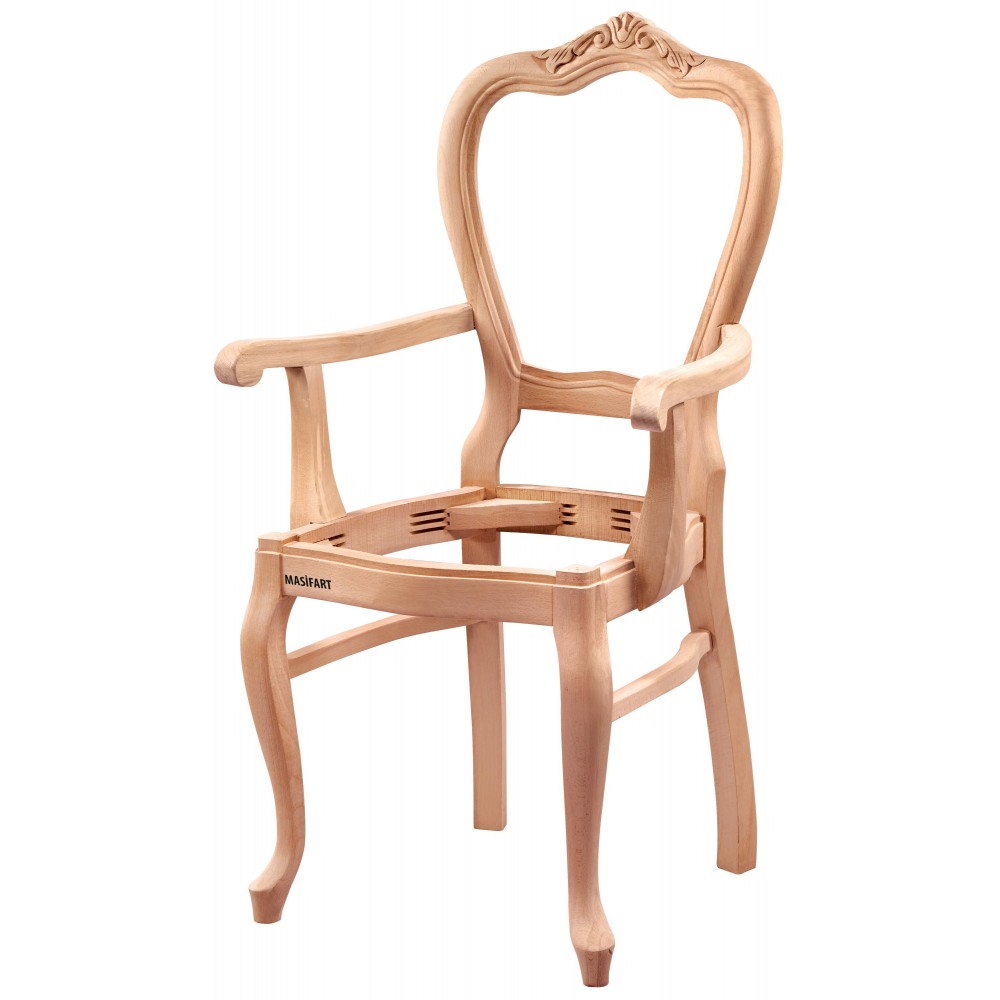 Masifart Venecia Klasik Oymalı Kollu Sandalye Cilasız Ham