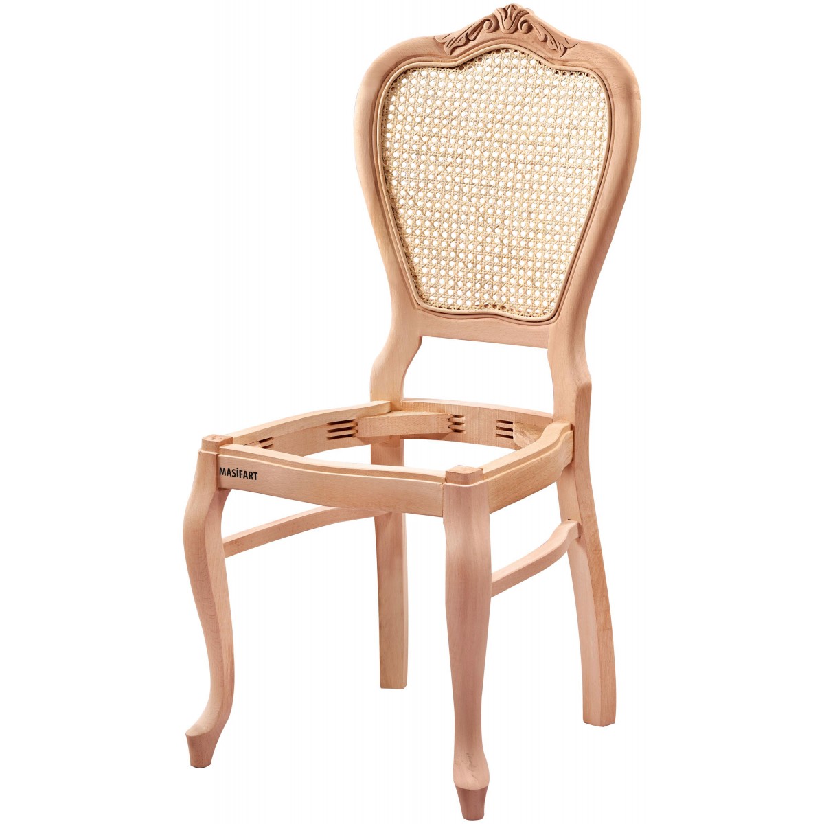 Masifart Alldona Hasırlı Klasik Oymalı Sandalye Cilasız Ham