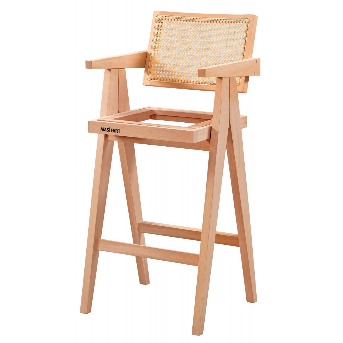 Masifart Lupus Hasırlı Luna Bar Sandalyesi Cilasız Ham