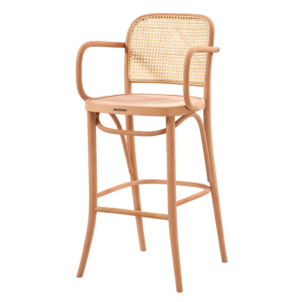 Masifart Valentin Hasırlı Petek Kollu Bar Sandalyesi Cilasız Ham
