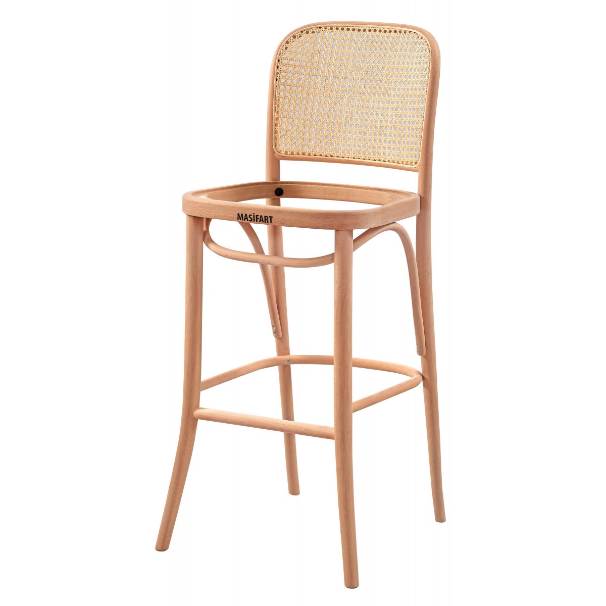 Masifart Achime Hasırlı Petek Döşemeli Bar Sandalyesi Cilasız Ham