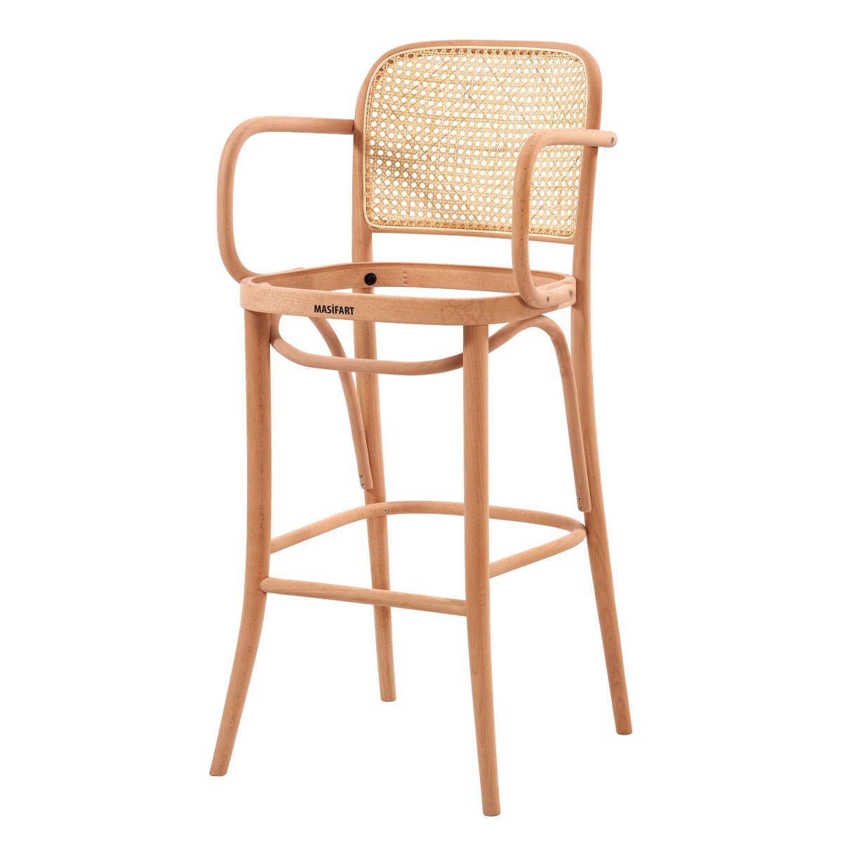 Masifart Alidah Hasırlı Petek Kollu Döşemeli Bar Sandalyesi Cilasız Ham