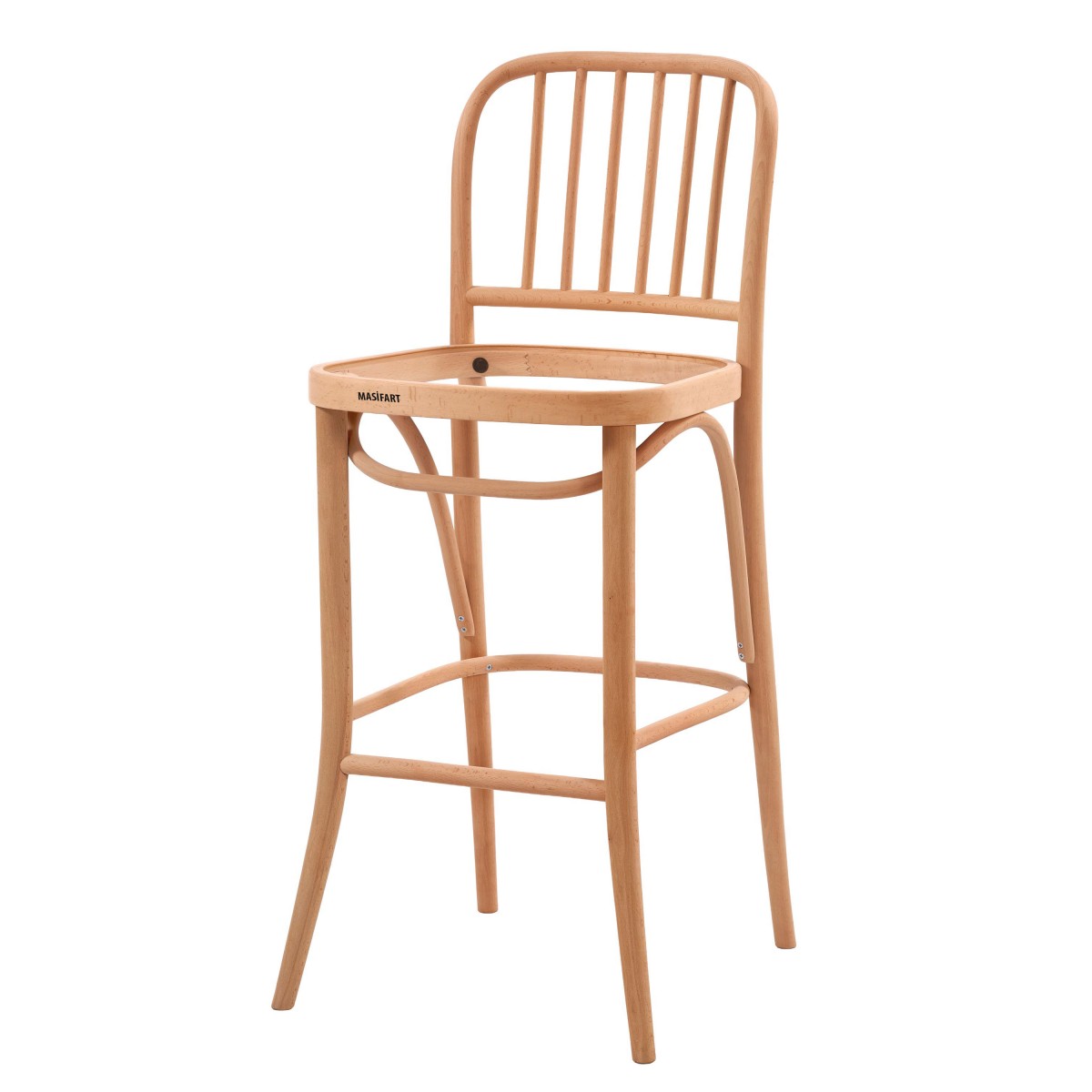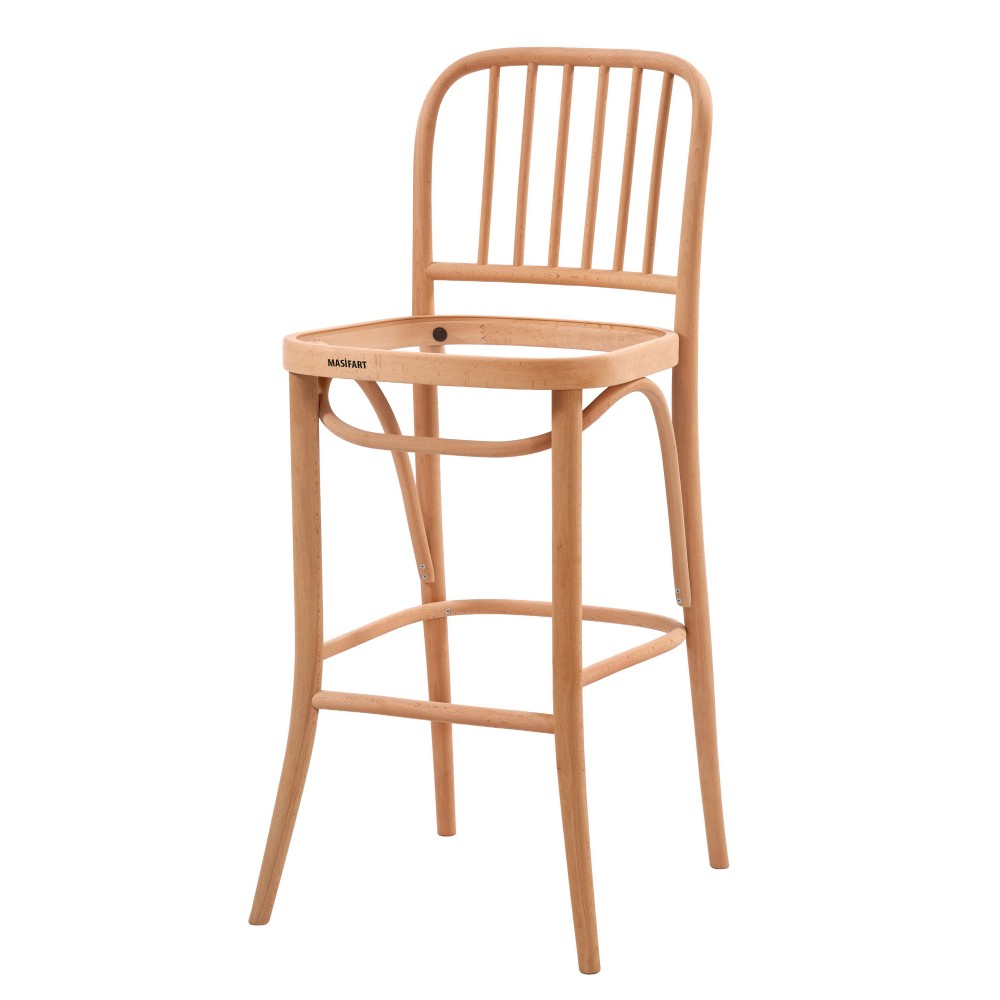 Masifart Decio Çıtalı Petek Döşemeli Bar Sandalyesi Cilasız Ham