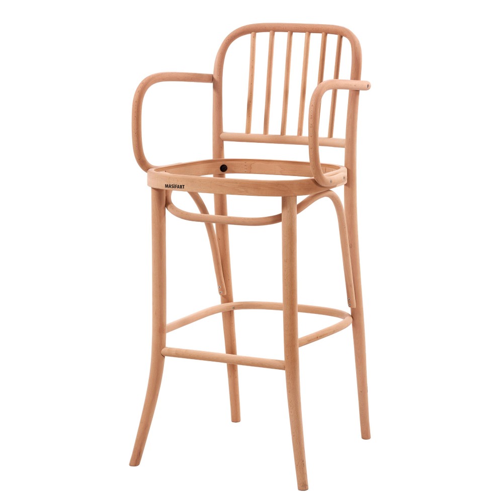 Masifart Feline Çıtalı Kollu Döşemeli Petek Bar Sandalyesi Cilasız Ham