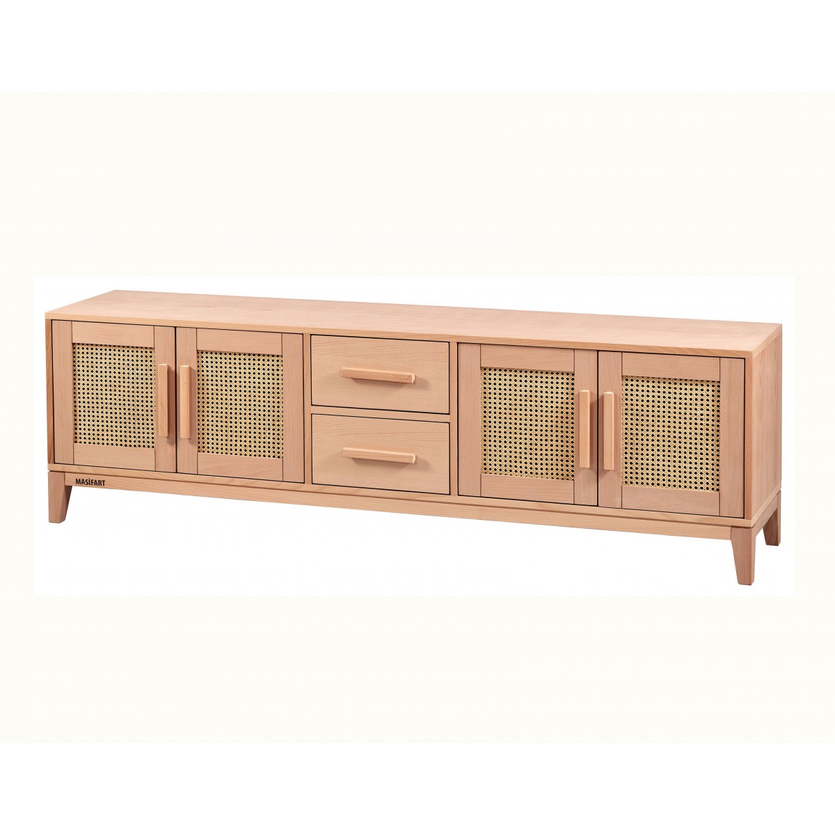 Masifart Ceviz Hasırlı Çekmeceli Konik Tv Sehpası Cilasız Ham